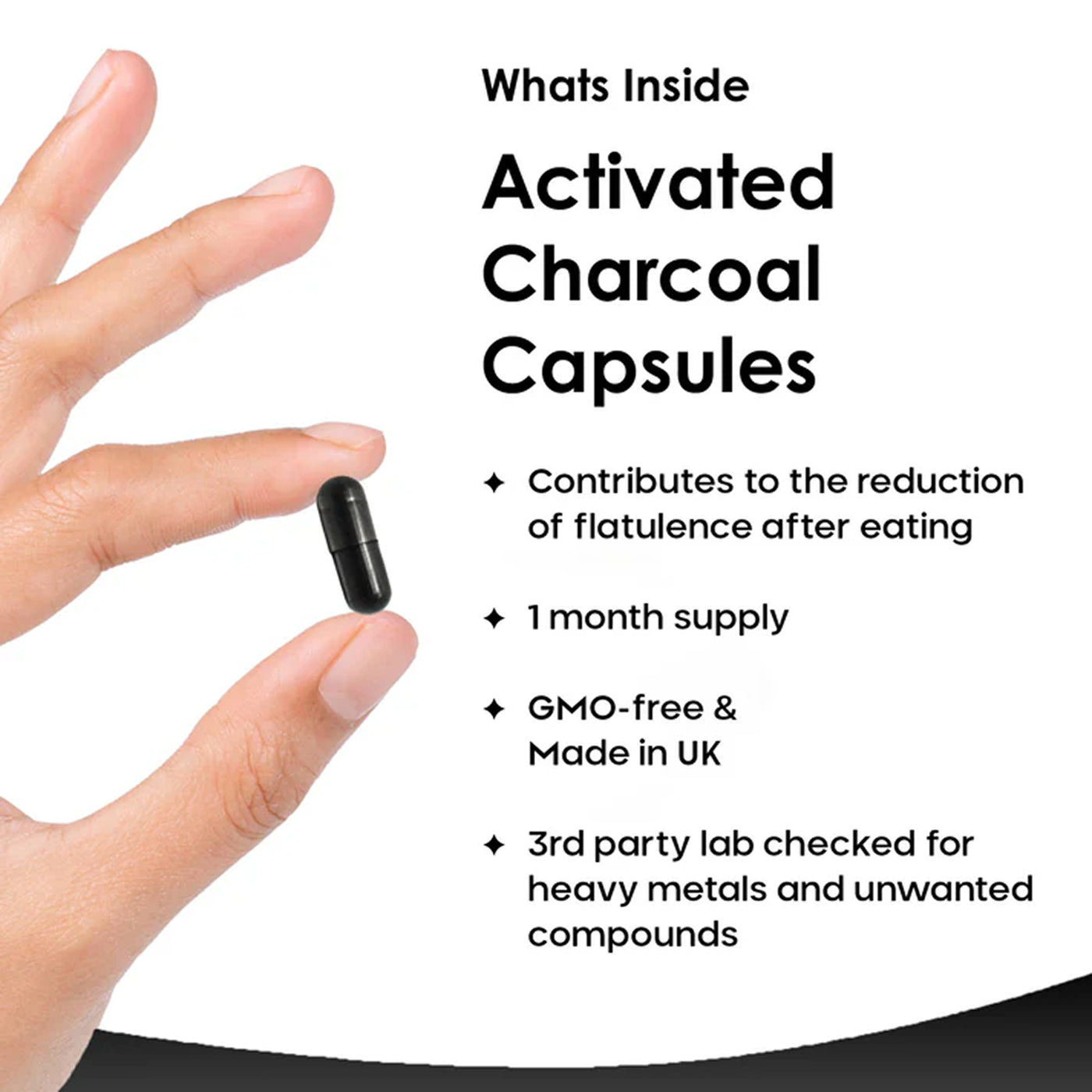 • 1040mg of high-quality activated charcoal per serving, providing a 120-capsule, 1-month supply.