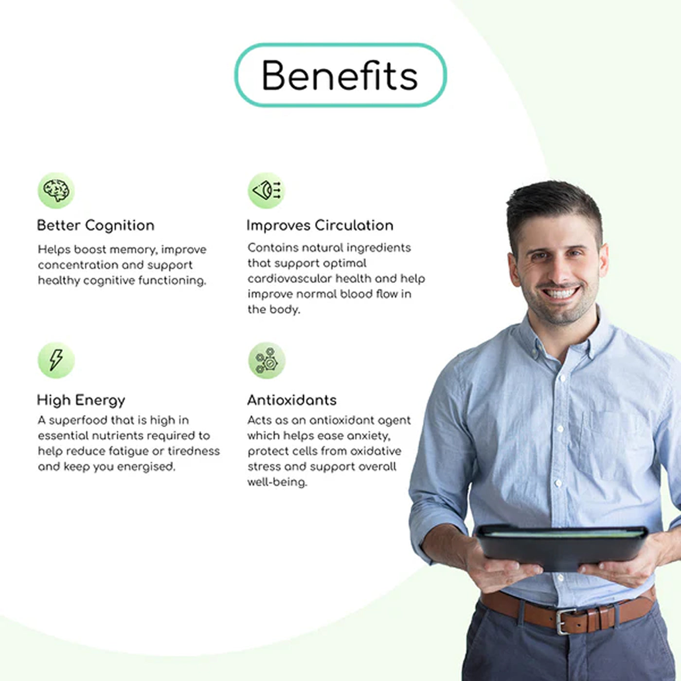 • A superfood that is high in essential nutrients required to help reduce fatigue or tiredness and keep you energised.