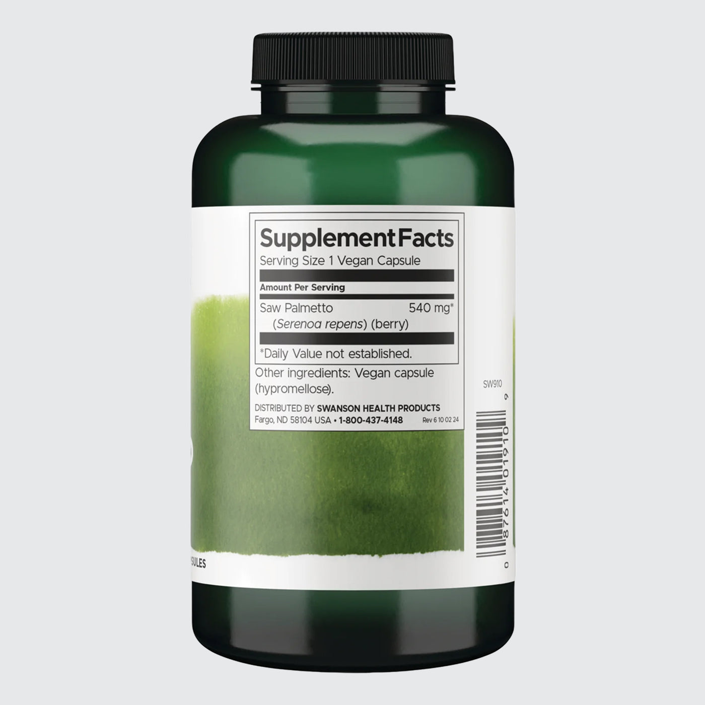 Swanson Full Spectrum Saw Palmetto is a great way for men to support their prostate. This potent herb is a source of fatty acids and sterols designed to promote this important area of men's health. Our saw palmetto capsules supply 540 mg of premium-grade whole berry powder.