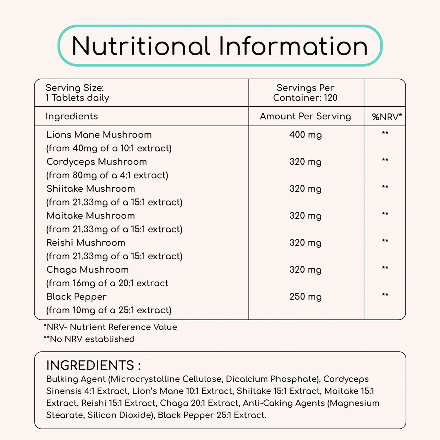 Type: Mushroom Complex Supplement