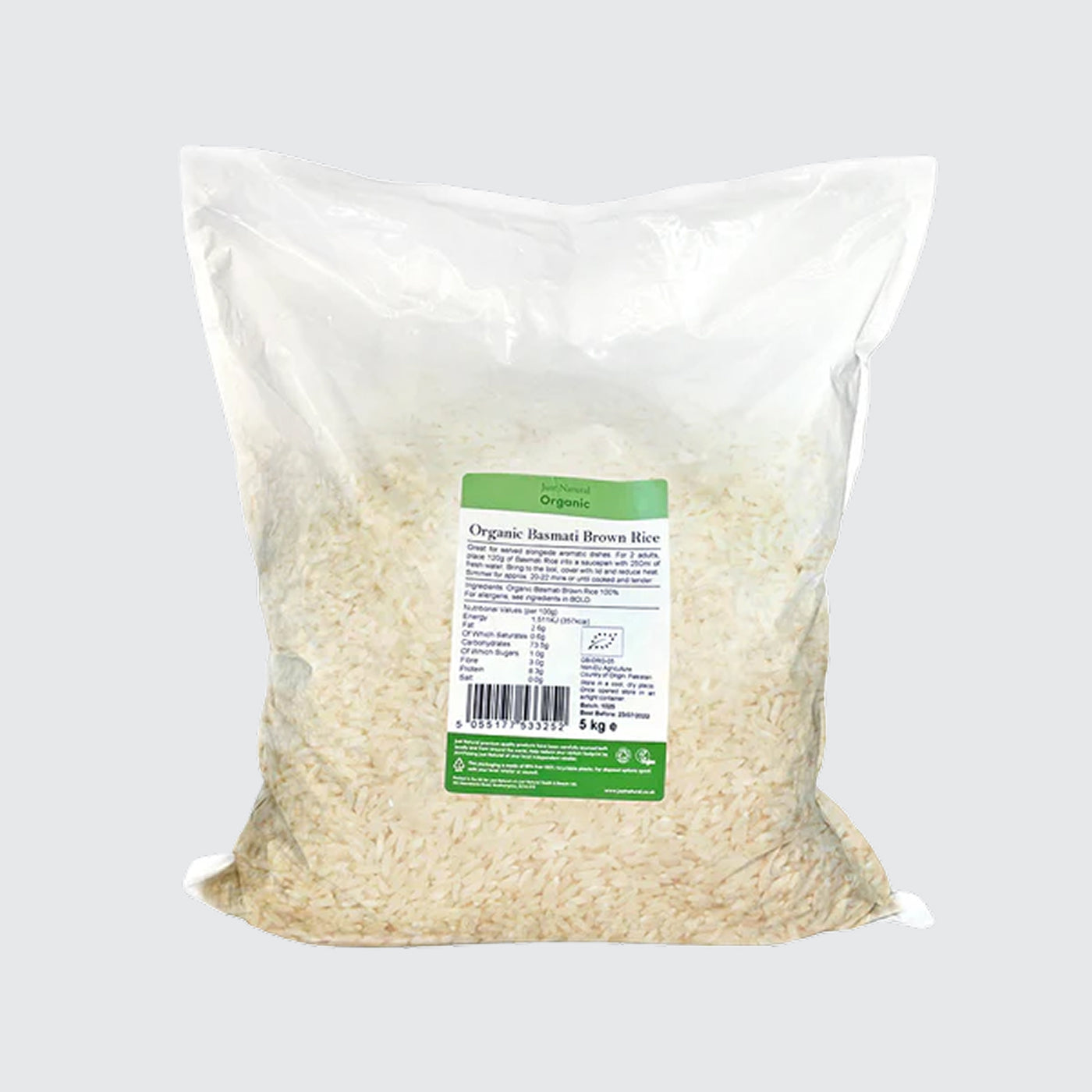 Just Natural Organic Basmati Brown Rice is selected from the best organic growers in Pakistan. Great for serving alongside aromatic dishes. Our mid bulk packs are packed in 100% recyclable film.