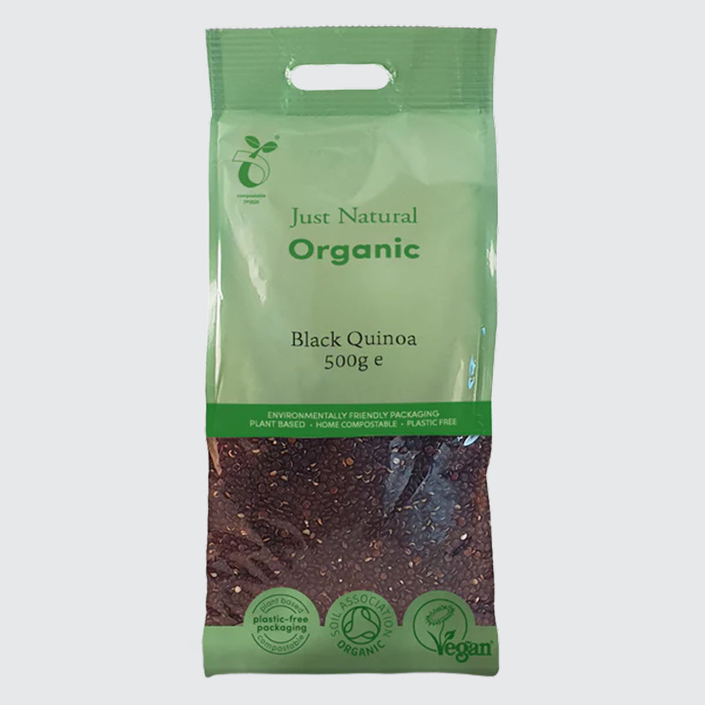 Just Natural Organic Black Quinoa is carefully selected from only the best organic producers in South America. Black Quinoa is packed with Iron and protein and quick and easy to cook as a side or to make a salad. And it’s packed in our 100% plastic free, certified home compostable packaging.