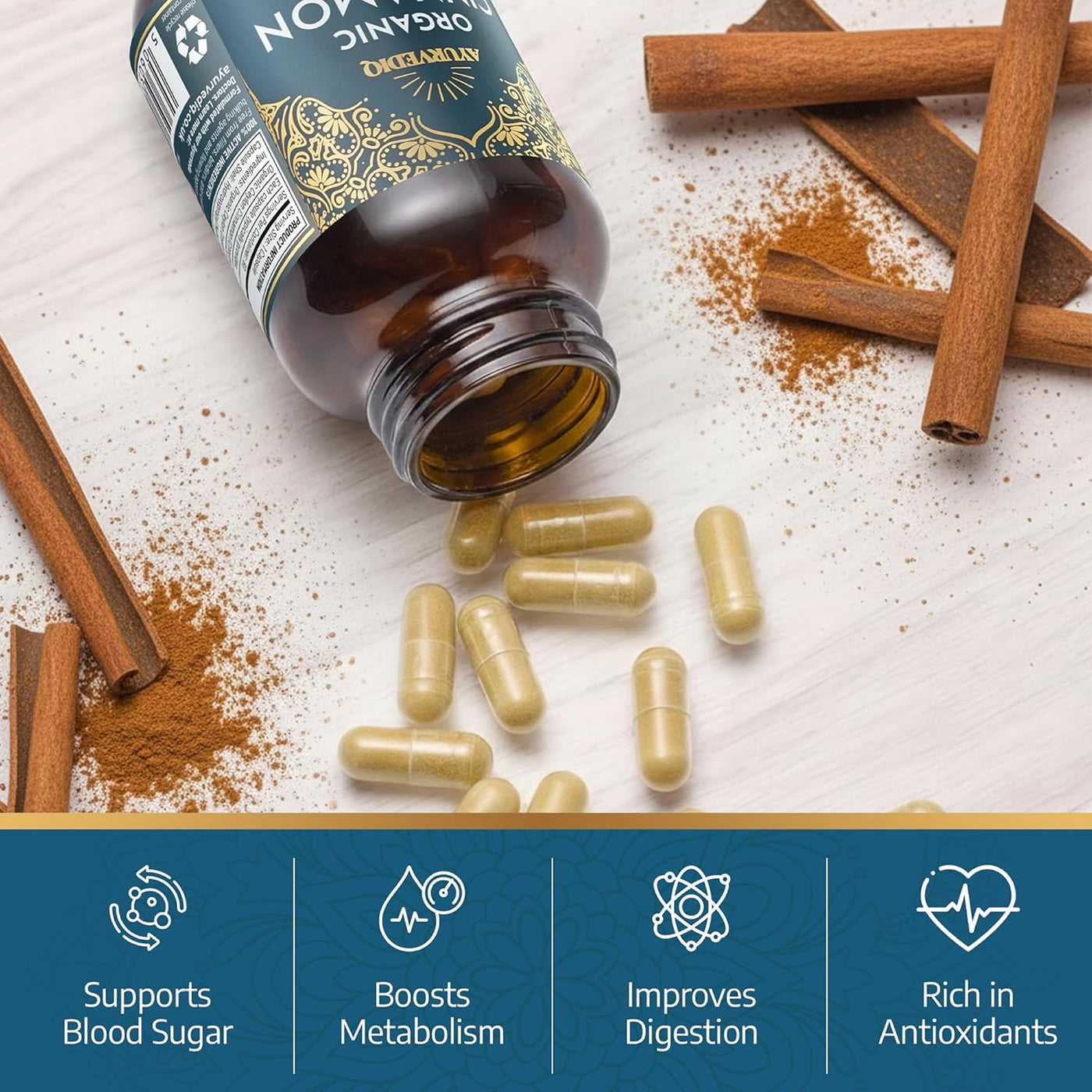 • NATURAL WELLNESS SUPPORT – Rich in plant compounds naturally found in Ceylon cinnamon, these Ayurvedic supplements help support healthy blood sugar levels, antioxidant protection, gentle metabolic balance and digestive health for everyday vitality.