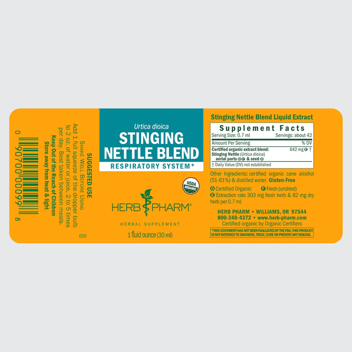 We prepare our Stinging Nettle Blend from the extracts of fresh aerial parts and dried seeds of Certified Organic Urtica dioica plants. The fresh aerial parts and dried seed are extracted separately and then blended.