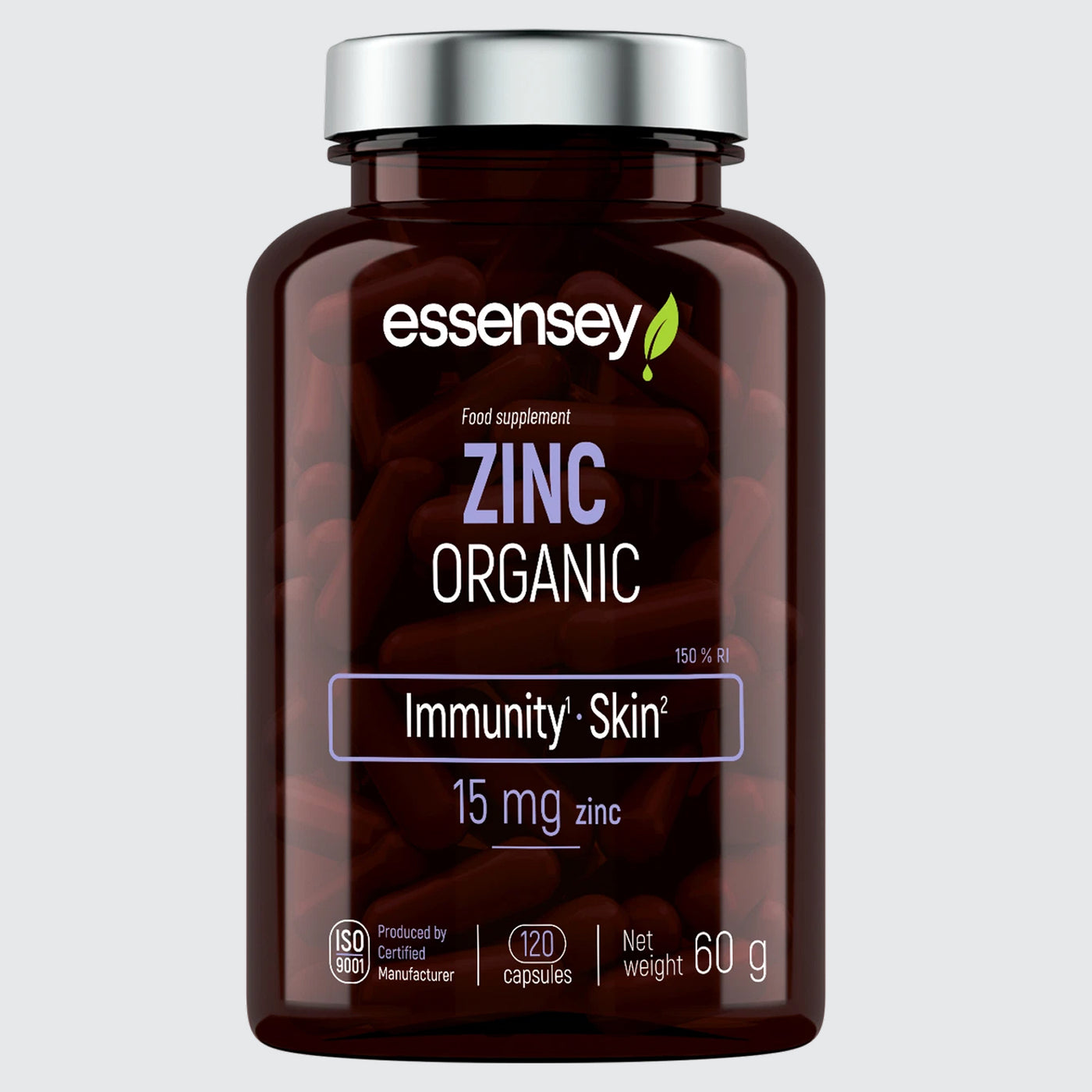 ESSENSEY ORGANIC ZINC is a premium dietary supplement featuring zinc, which supports the proper functioning of the immune system and helps maintain healthy skin, nails, and hair. This supplement is perfect for vegetarians due to its cellulose capsule.