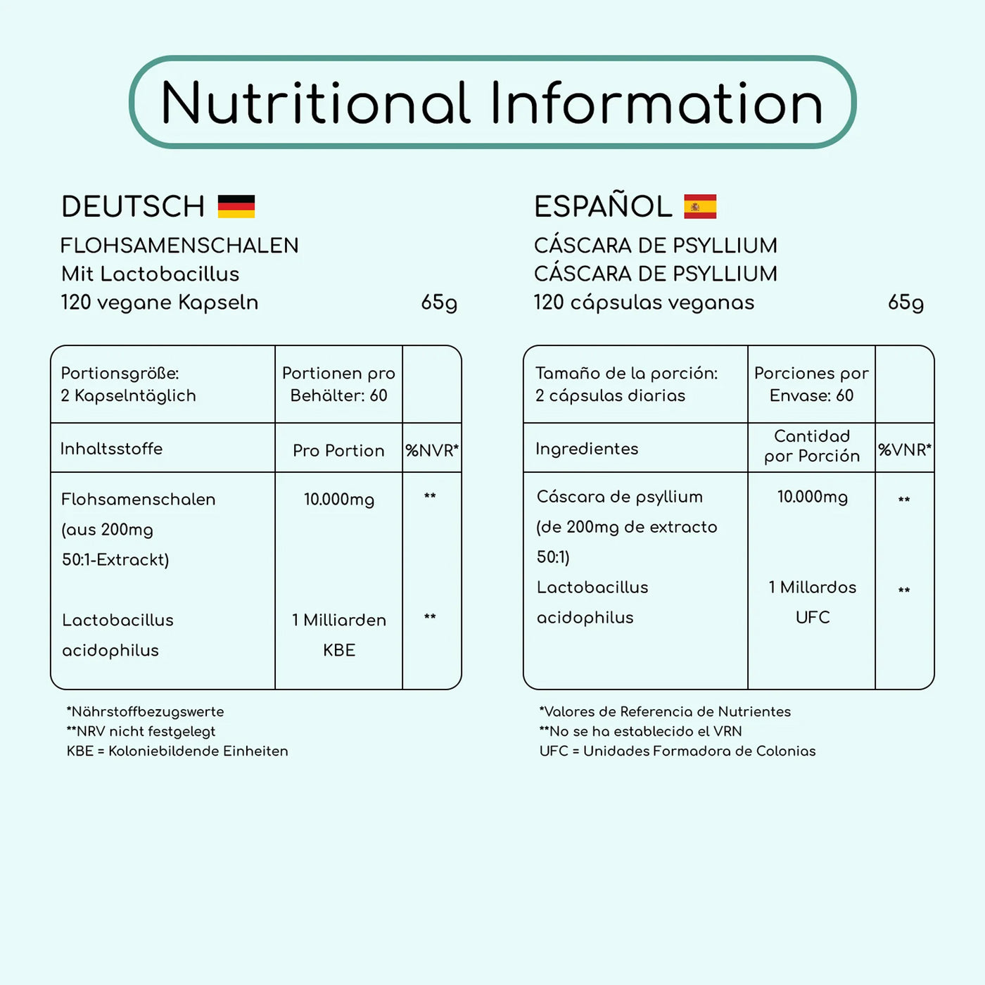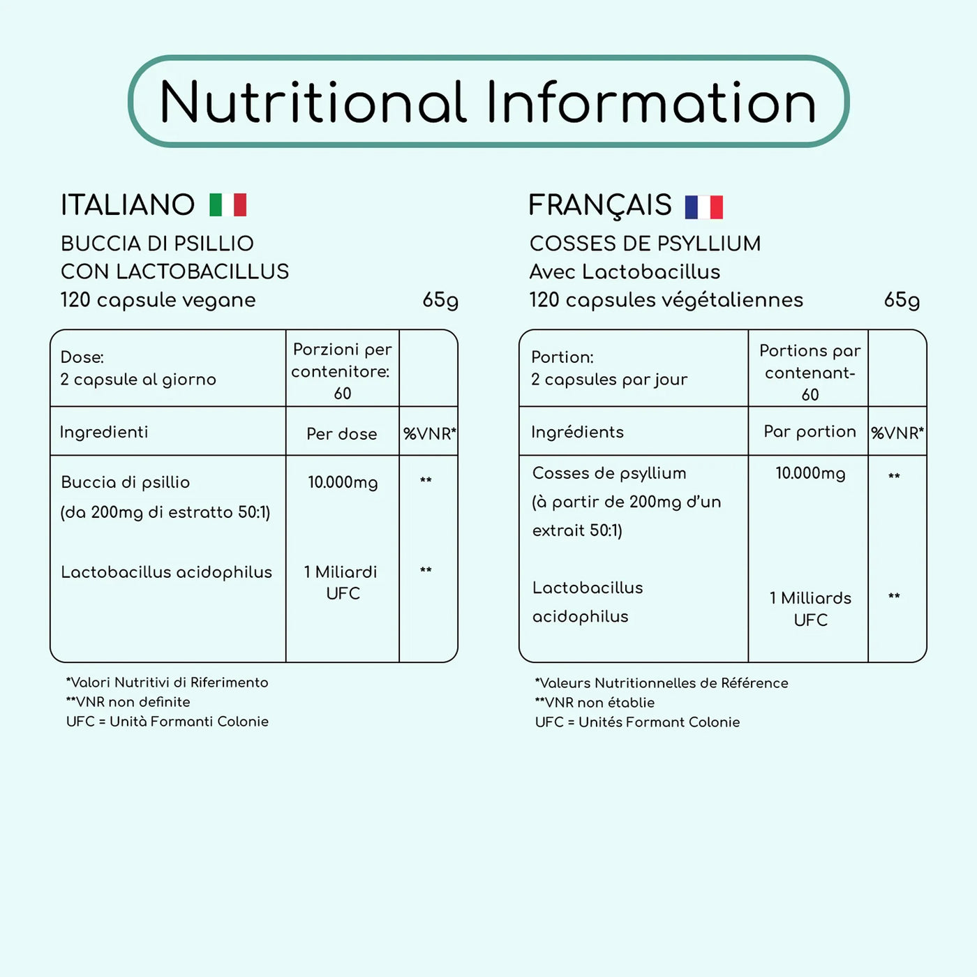• Each psyllium husk capsule unites the power of a soluble fibre and a probiotic, which work together to improve gut flora, reduce bloating, and support digestive wellness.