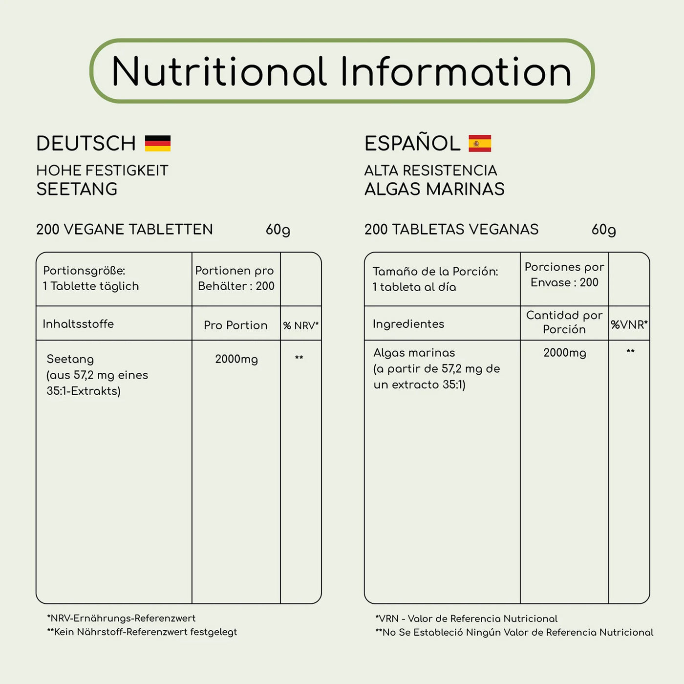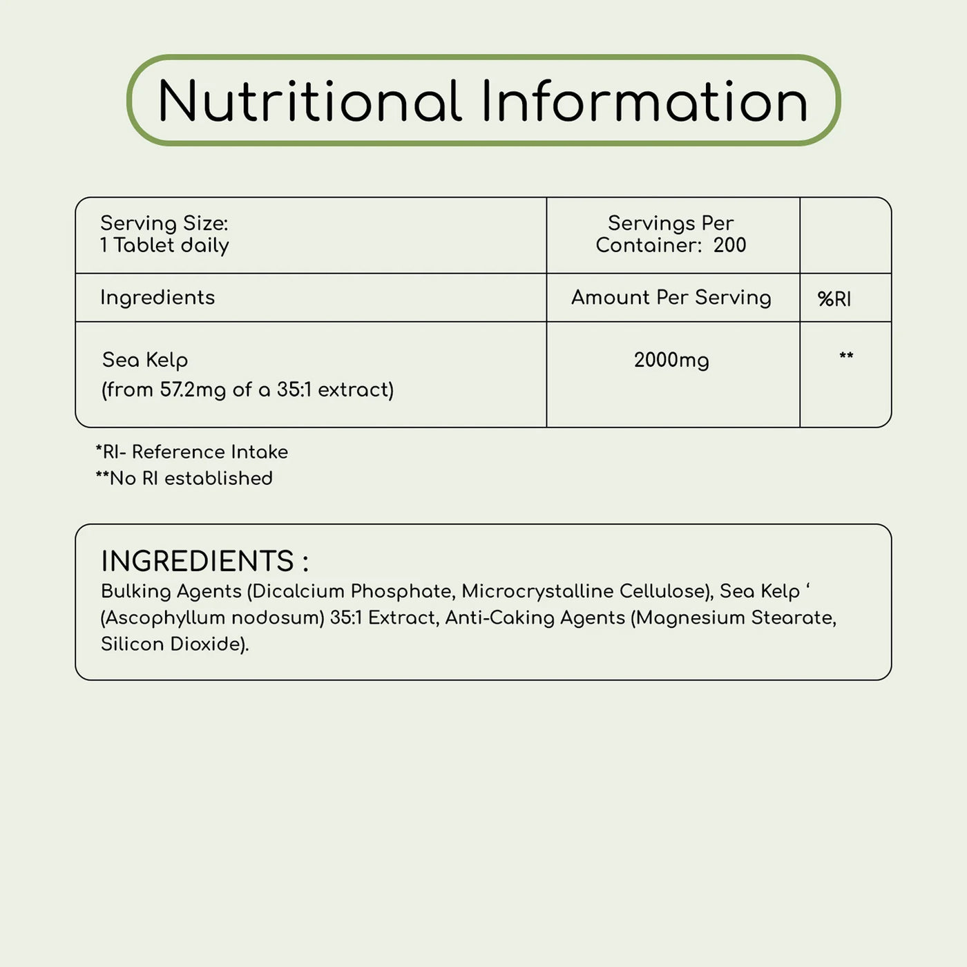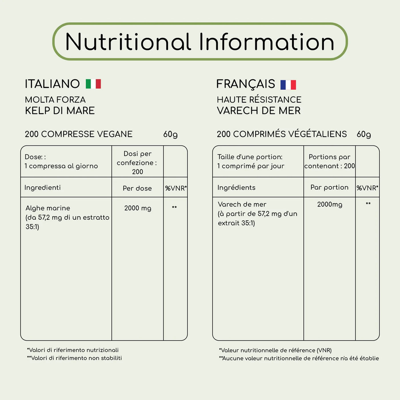 • Thanks to its iodine-rich composition, our sea kelp tablets enhance your metabolism, helping you maintain a balanced weight and great energy levels.