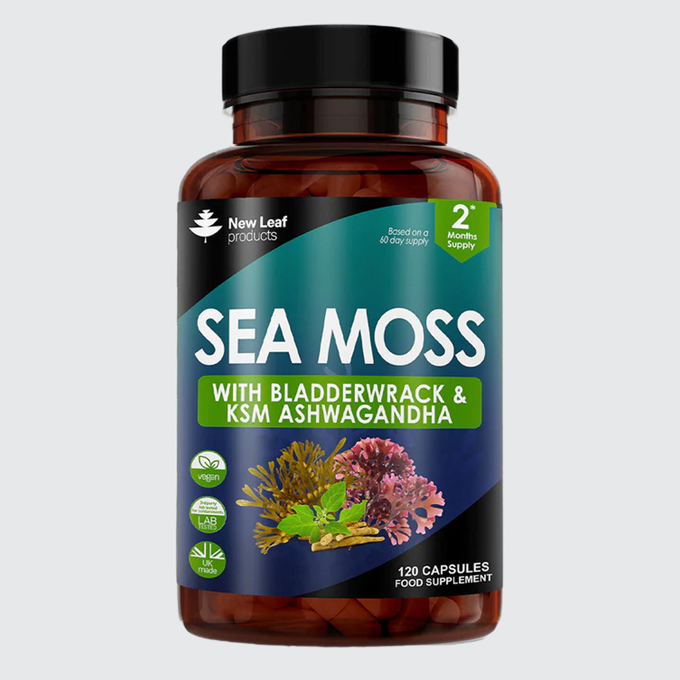 Sea Moss Complex is a carefully crafted supplement combining Irish Sea Moss, Bladderwrack, and KSM Ashwagandha. Irish Sea Moss, a red algae, is harvested from the nutrient-rich waters of the Atlantic Ocean. This natural sea vegetable has been traditionally used for centuries, prized for its wide range of nutrients and minerals - known to contain 92 of the 102 minerals found in the human body. Each bottle contains 120 capsules, offering a two-month supply.