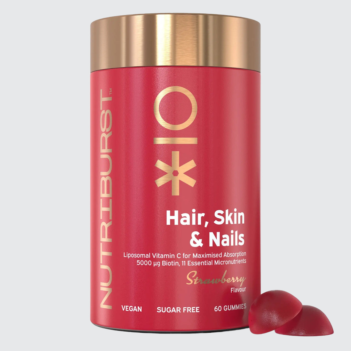 Sweeteners (Maltitol, lsomalt), Water, Gelling Agent (Pectin), Acidity Regulators (Citric Acid, Sodium Citrate), Natural Flavourings, Calcium D-Pantothenate, Liposomal Vitamin C (Vegetable Oil, Cocoa Butter, Isomaltose Syrup, Buffer Salt, Ascorbic Acid), Vitamin E (D-Alpha Tocopheryl Succinate), Biotin, Zinc Citrate, Pyridoxine HCl, Vitamin A (Retinyl Palmitate), Folic Acid, Potassium Iodide, Colouring Food (Strawberry Extract), Vegetable Oil (Coconut Oil, Glazing Agent [Carnauba Wax]), Sweetener (Steviol Glycosides from Stevia), Vitamin B12 (Methylcobalamin), Vitamin D3 (Cholecalciferol)